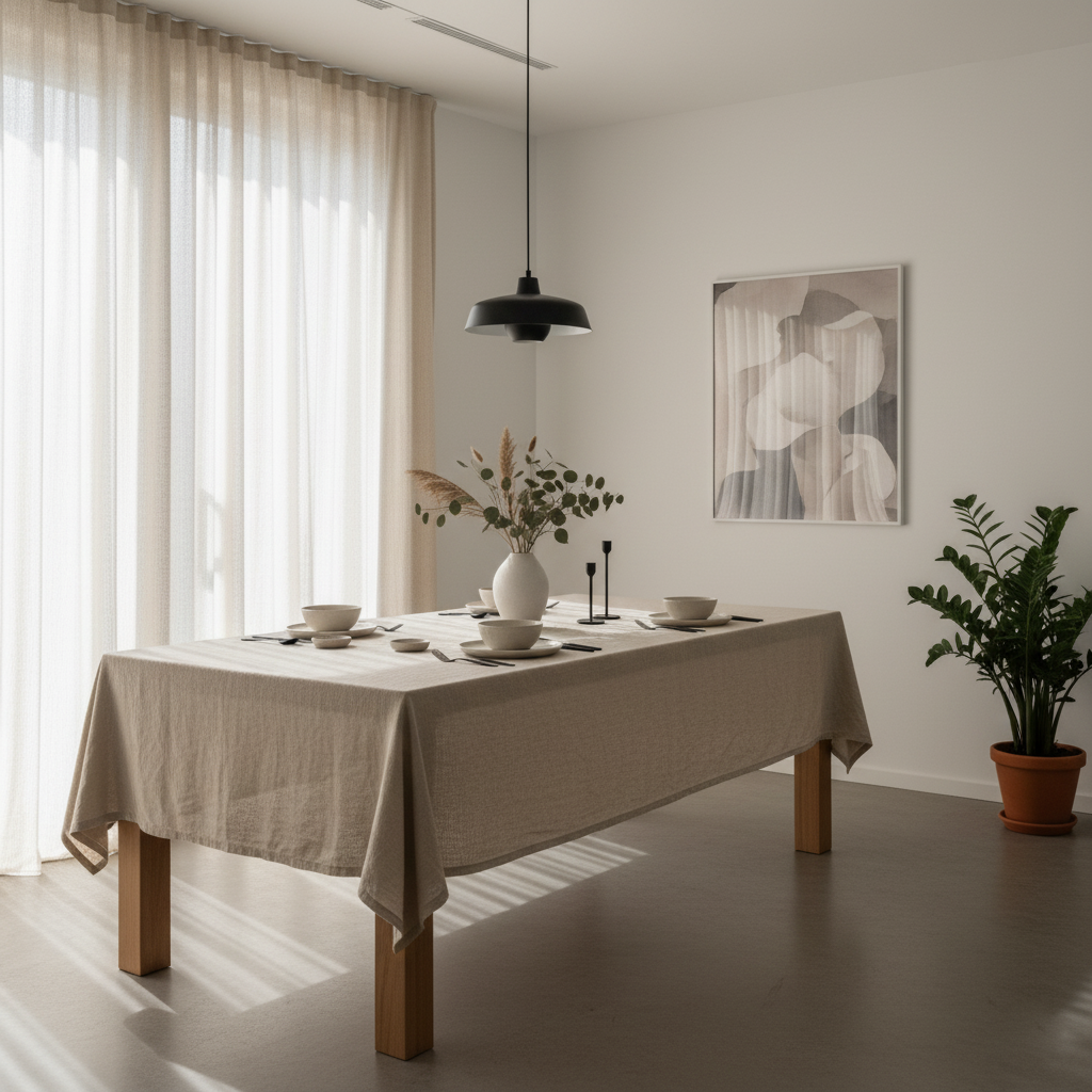 Keten masa örtüleri, yüksek kaliteli keten kumaştan üretilmiş olup hem şık hem de dayanıklıdır. Ev veya restoran ortamlarında kullanılabilir, dekoratif bir görünüm sağlar. Kolay temizlenebilir ve uzun ömürlüdür. Minimalist ve modern masa dekorasyonlarına uyum sağlayan tasarımı ile yemek alanlarında estetik ve fonksiyonel bir çözüm sunar.